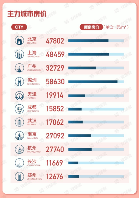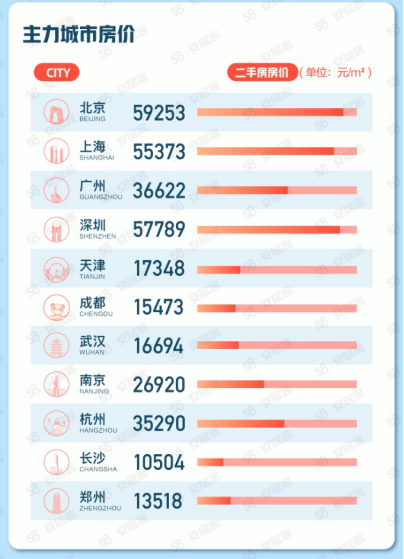 一线城市中,北京、深圳、上海二手房挂牌均价分别为59253元/㎡、57789元/㎡和55373元/㎡,广州为36622元/㎡。新一线城市中,杭州和南京的二手房挂牌均价分别为35290元/㎡和26920元/㎡。