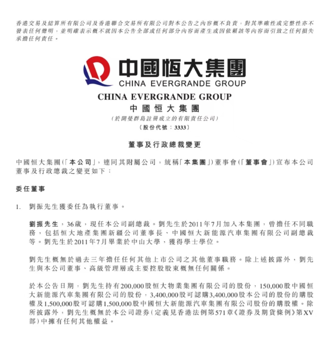与此同时,恒大物业上述事件也直接导致中国恒大高管层变动,公告还指出,根据初步调查资料,中国恒大集团执行董事夏海钧先生及潘大荣先生,以及本公司的子公司恒大集团有限公司的执行总裁柯鹏先生参与了上述安排。鉴于此,董事会决议要求该等人士辞任本集团的职务。