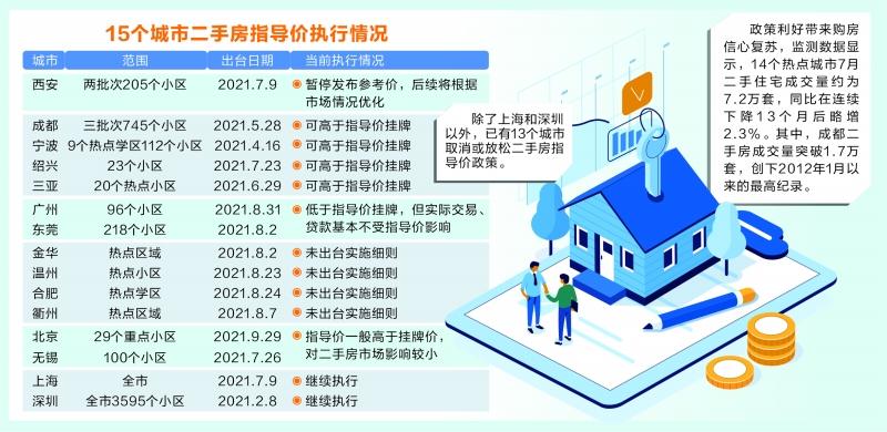 7月初,西安第一个“官宣”暂停发布二手房指导价。此后,据克而瑞研究中心统计,截至目前,除上海和深圳外,已有13个城市取消或放松这项政策。这13个城市包括:西安、成都、宁波、绍兴、三亚、广州、东莞、金华、温州、合肥、衢州、北京和无锡。