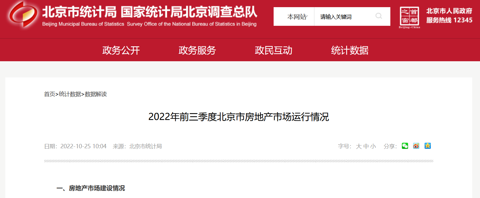 大公房产讯 10月25日,北京市统计局发布2022年前三季度北京市房地产市场运行情况。