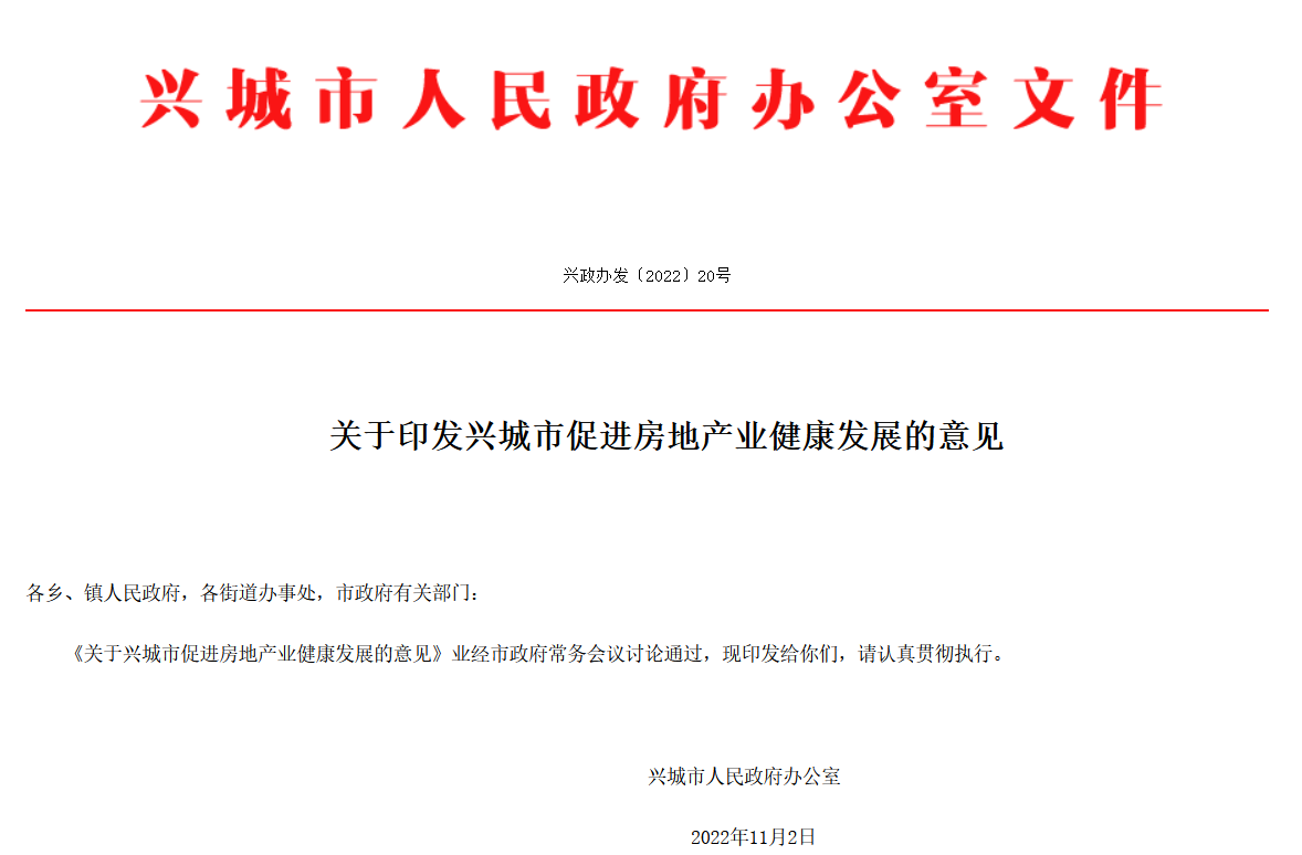 大公房产讯 11月17日,辽宁省兴城市人民政府办公室发布《关于兴城市促进房地产业健康发展的意见》,实施期限从2022年12月1日起至2023年2月28日止。意见包括契税补贴、所得税补贴、购房补贴等九项措施。