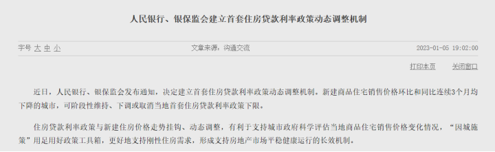 大公房产讯 1月5日晚间,中国人民银行、中国银行保险监督管理委员会决定在阶段性调整差别化住房信贷政策的基础上,建立新发放首套住房商业性个人住房贷款利率政策动态调整长效机制。