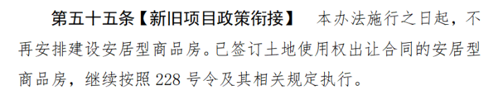 另外,《深圳市共有产权住房管理办法(征求意见稿)》第五十五条新旧项目政策衔接指出,本办法施行之日起,不再安排建设安居型商品房。已签订土地使用权出让合同的安居型商品房,继续按照228号令及其相关规定执行。