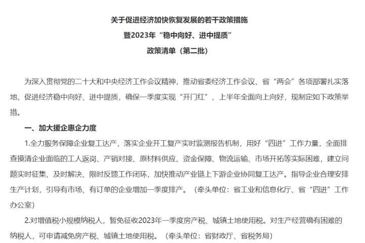 大公房产讯 2月5日,山东省人民政府印发关于促进经济加快恢复发展的若干政策措施暨2023年“稳中向好、进中提质”政策清单(第二批)的通知(以下简称“通知”)。