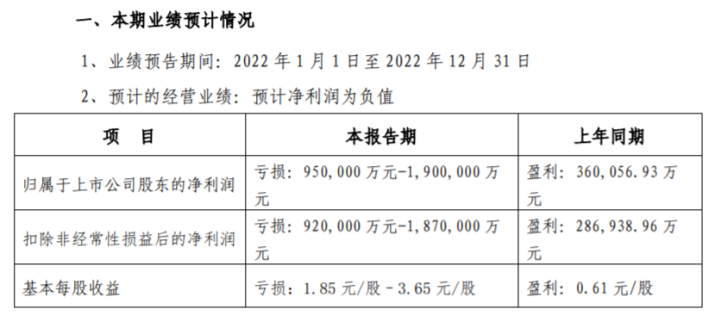 前不久,金科股份还发布了2022年度业绩预报。公告显示,公司预计2022年净利润为-95亿元至-190亿元,扣除非经常性损益后的净利润为-92亿元至-187亿元。