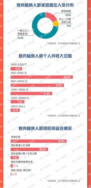 意向租房人群以80-95为主,有娃家庭成为租房主力