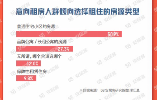 超半数租房人群选择租住普通小区房源,27.3%的人群选择租住品牌公寓