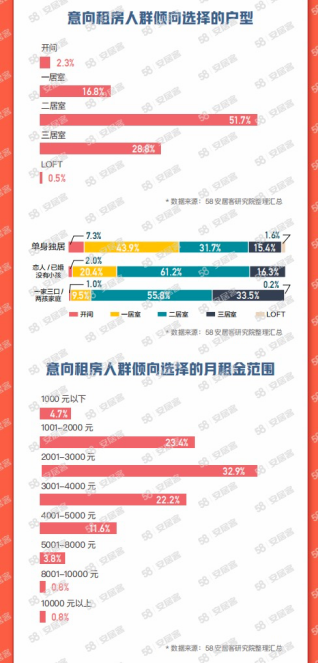 85.7%的意向租房人群选择整租,两居室更受意向租房人群欢迎
