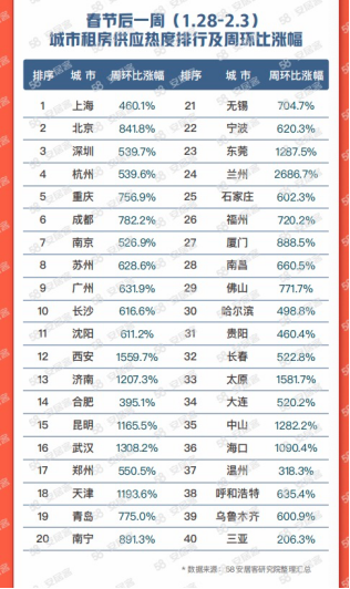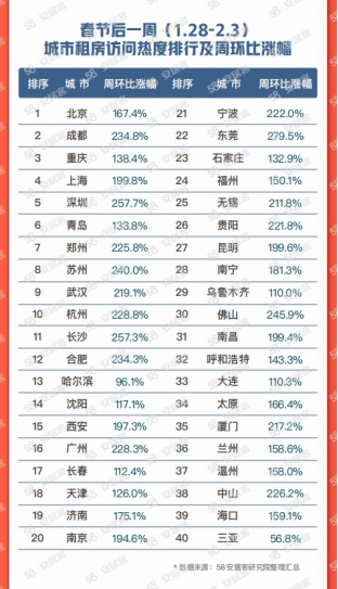 重点城市租房热度环比翻倍,春节后挂牌房源大幅增加