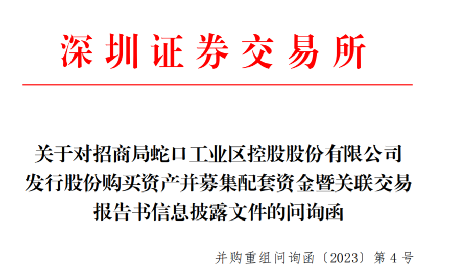 大公房产讯 2月27日晚间,招商蛇口收到深交所下发的许可类重组问询函。