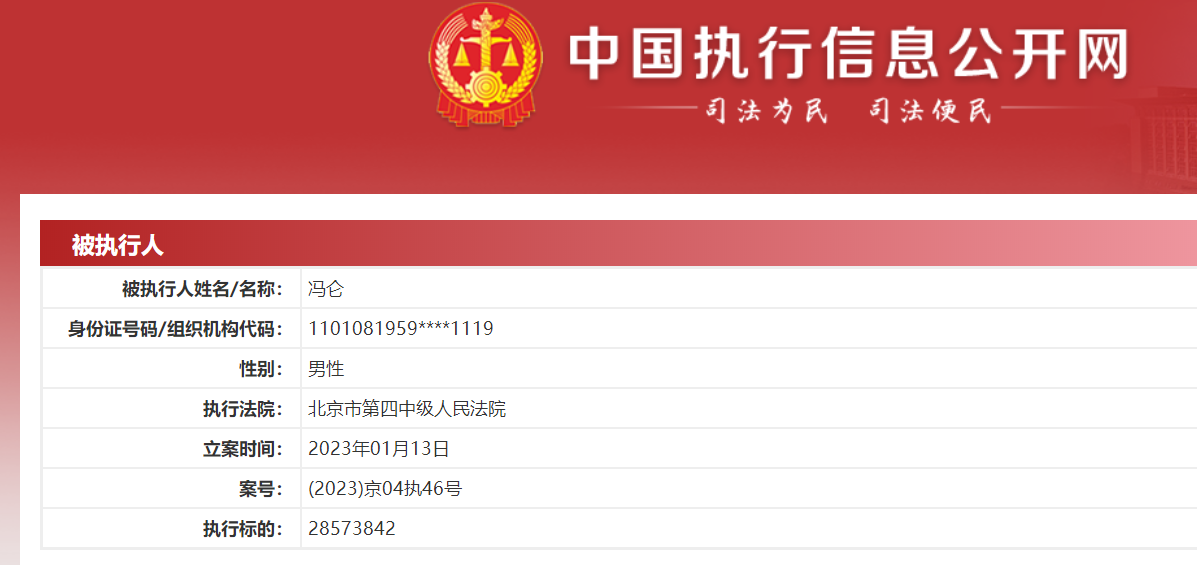 中国执行信息公开网显示,近日,万通创始人冯仑新增一则被执行人信息。