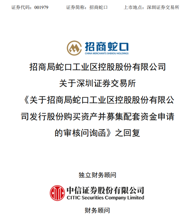 大公房产讯 4月12日,招商局蛇口工业区控股股份有限公司公布对深圳证券交易所《关于招商局蛇口工业区控股股份有限公司发行股份购买资产并募集配套资金申请的审核问询函》的回复。