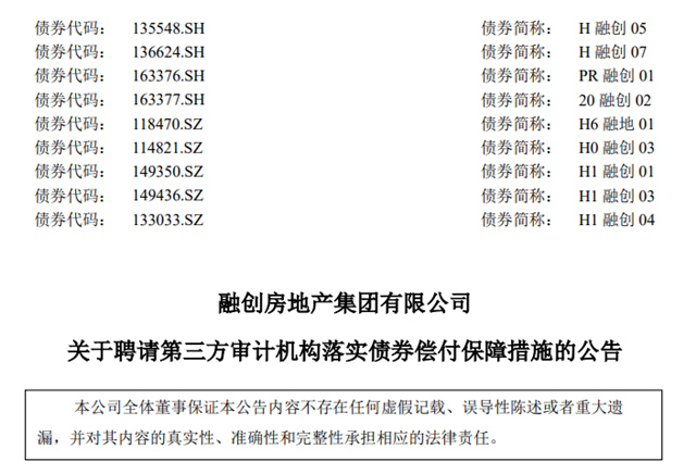 根据公告,相关展期债权包括“H融创05”、“H融创07”、“PR融创01”、“20融创02”、“H6融地01”、“H0融创03”、“H1融创01”、“H1融创03”及“H1融创04”。为保障债券持有人权益,融创房地产已聘请第三方审计机构对前述偿付保障措施进行监督。据了解,该第三方审计机构为浙江耀信会计师事务所有限公司。