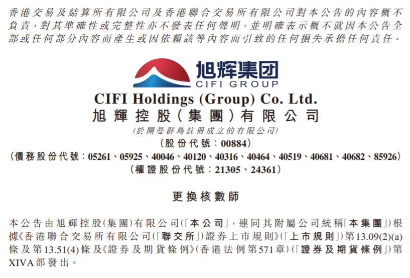 大公房产讯 5月16日,旭辉控股集团(股份代号:00884)和旭辉永升服务(股份代号:1995)先后发布关于公司更换核数师的公告。
