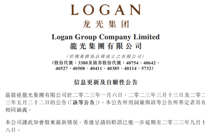 大公房产讯 7月18日,龙光集团发布信息更新及自愿性公告。根据公告可知,公司香港呈请的聆讯已进一步延期至2023年9月18日。