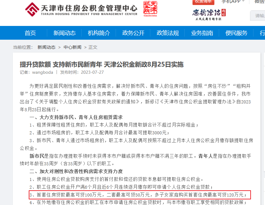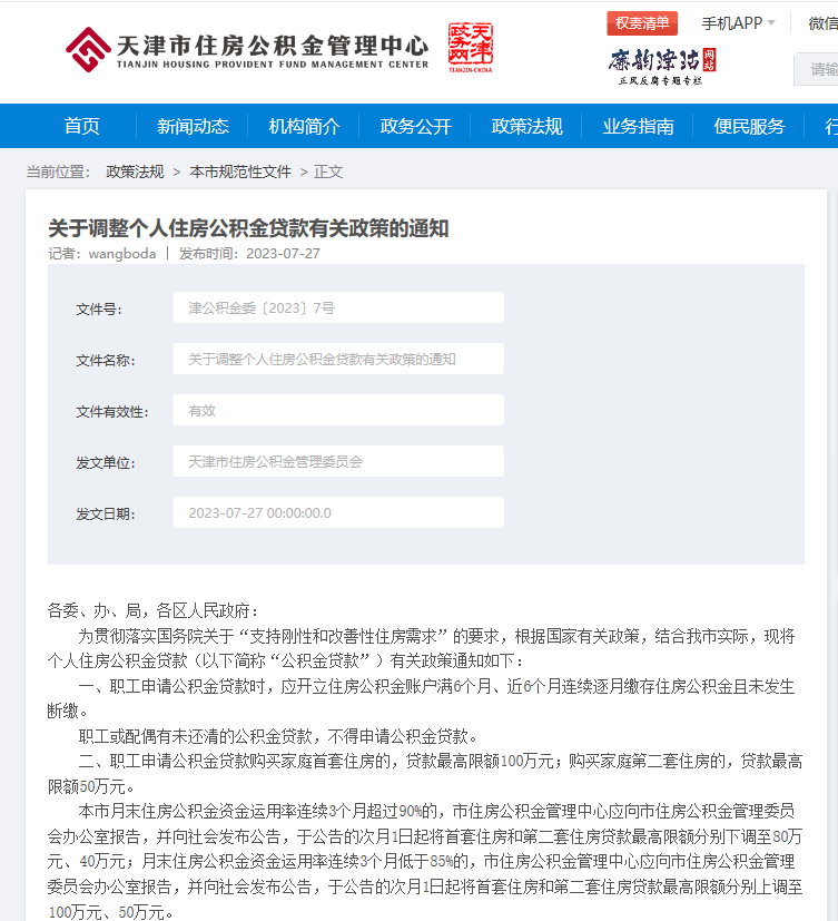 大公房产讯 7月27日,天津市住房公积金管理中心发布《关于调整个人住房公积金贷款有关政策的通知》(以下简称《通知》),新修订《天津市住房公积金提取管理办法》自2023年8月25日起施行。