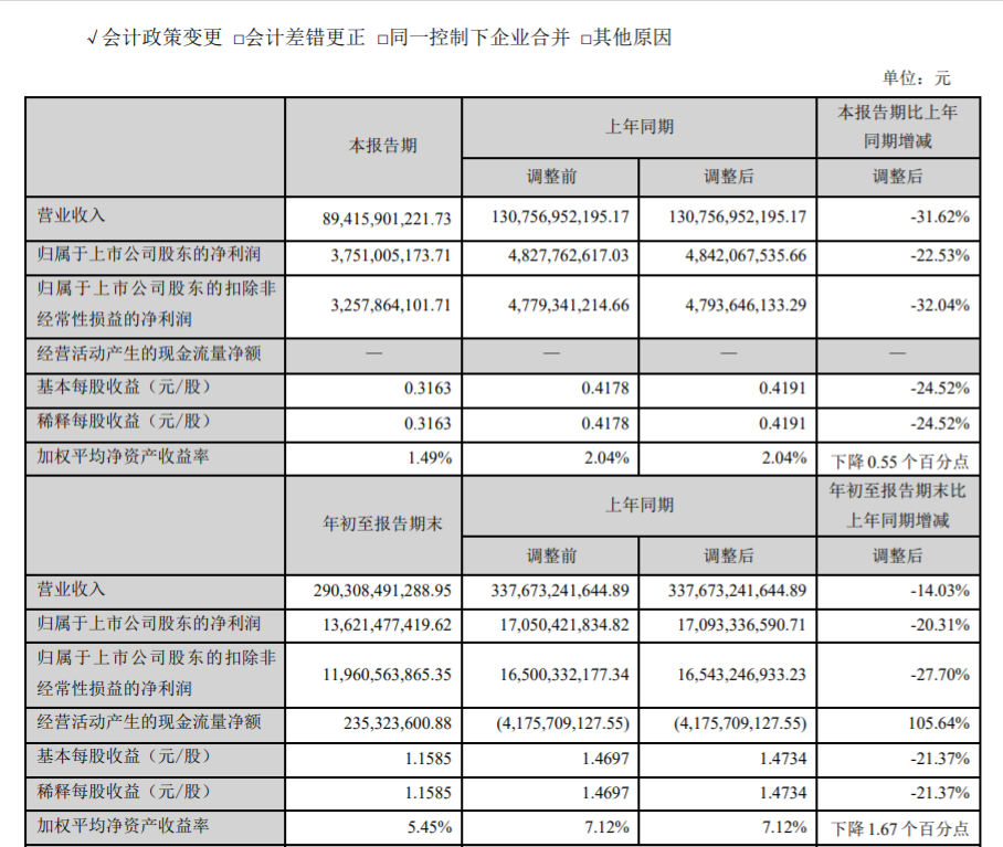 大公房产讯 10月27日,万科A发布2023年第三季度报告。报告显示,第三季度公司实现营收894.16亿元,同比下降31.62%;净利润37.51亿元,同比下降22.53%;扣非净利润32.58亿元,同比下降32.04%。
