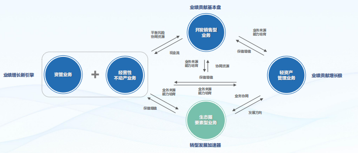 这份业绩报表背后,是华润置地在向城市投资开发运营商角色进一步深入转换过程中,打造的发展新模式——“3+1”业务模式。所谓“3+1”,就是开发销售型业务、经营性不动产与资管业务、轻资产管理业务三大主营业务与生态圈要素型业务有机联动,是华润置地于“十四五”规划初期在原先商业模式基础上提出的新业务模式。