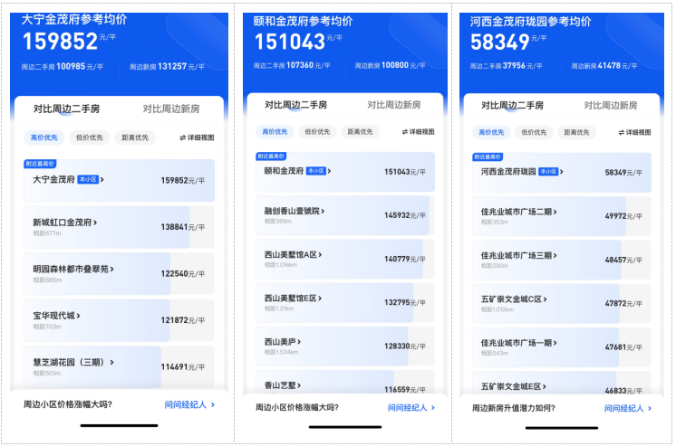 从二手房市场看,金茂府在多个城市均为区域的价格标杆。以苏州市为例,在狮山金茂府之前,已经有多个金茂府项目建成交付,其二手成交价远高于周边同类型住宅。