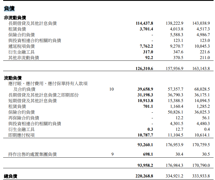 截止2024年6月30日,新世界发展总负债额约为2202.69亿港元,其中非流动负债约为1263.11亿港元,流动负债约为939.58亿港元。