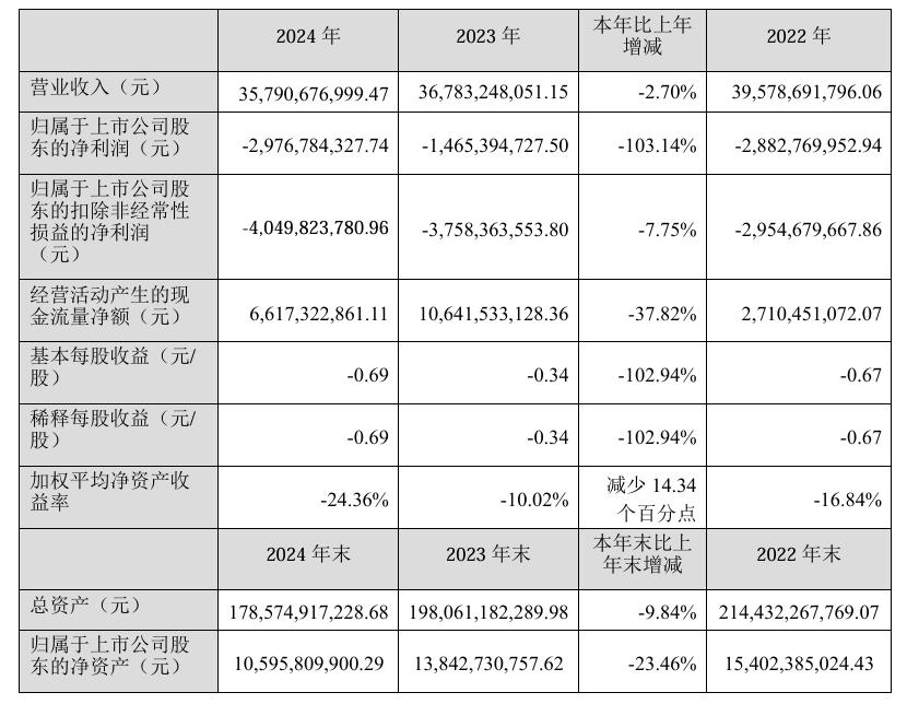 近年来,大悦城控股业绩表现并不理想。财报显示,2024年,大悦城控股实现营业收入约357.91亿元,同比下降2.70%;归属于上市公司股东的净亏损约29.77亿元,同比下降103.14%;归属于上市公司股东的净资产约105.96亿元,同比下降23.46%。