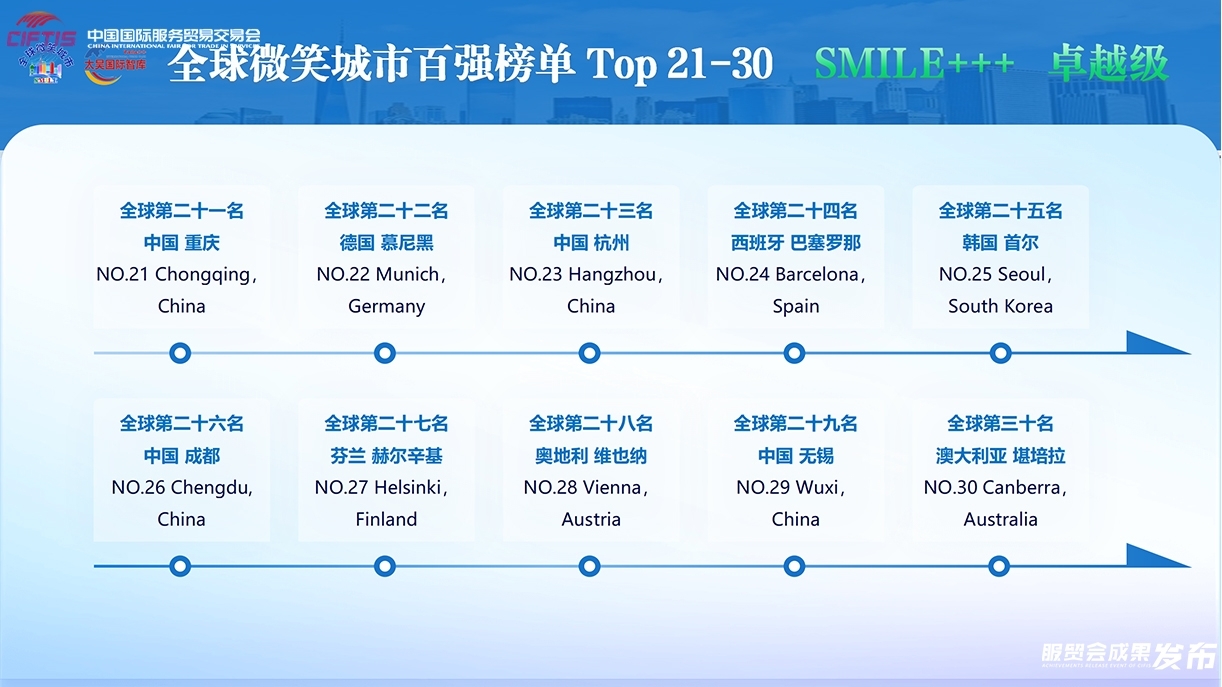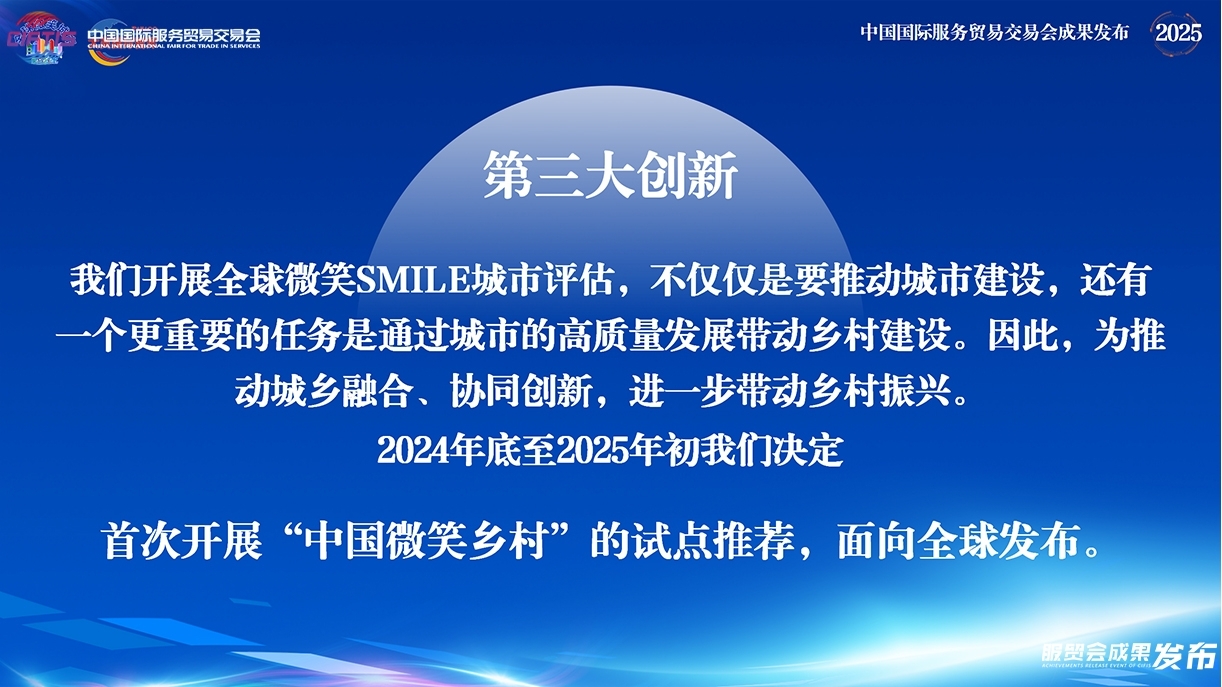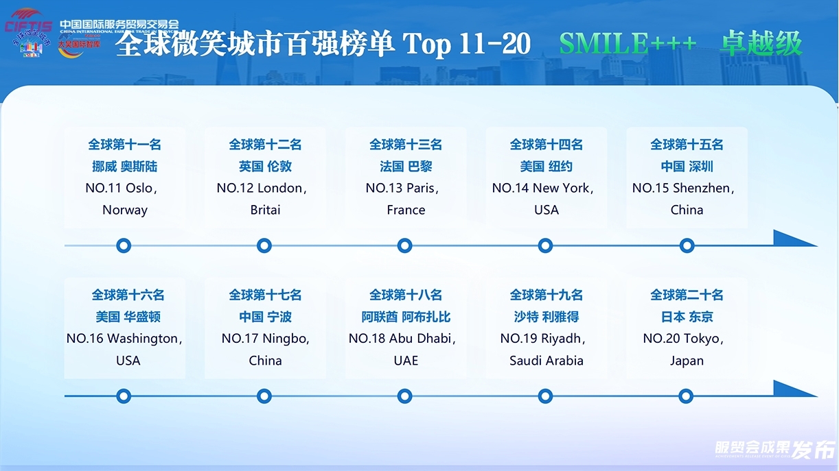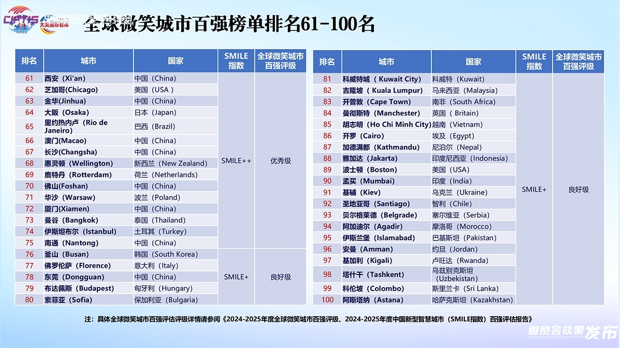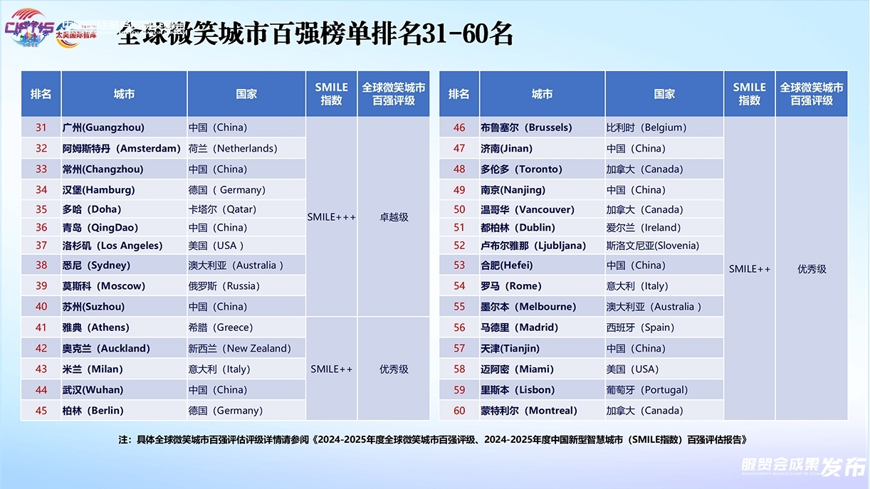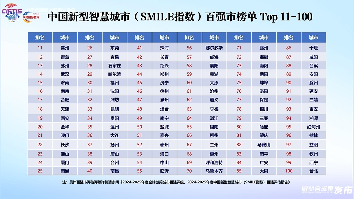 2025年9月11日全球微笑城市(SMILE指数)专家委、太昊国际智库权威发布了2024-2025年度全球微笑城市百强、2024-2025年度中国新型智慧城市(SMILE指数)百强市、百强区、百强县权威成果。今年全球微笑城市百强指数成果是全球微笑城市(SMILE指数)专家委连续第三年作为中国国际服务贸易交易权威成果受邀发布,2025新一年度的成果发布标志着全球微笑城市(SMILE指数)专家委始终坚持“以人为本”的核心理念推动全球微笑城市评估评级工作进入了一个崭新的阶段,为推动全球城市治理和未来城市高质量发展提供了重要参考和规范指引。