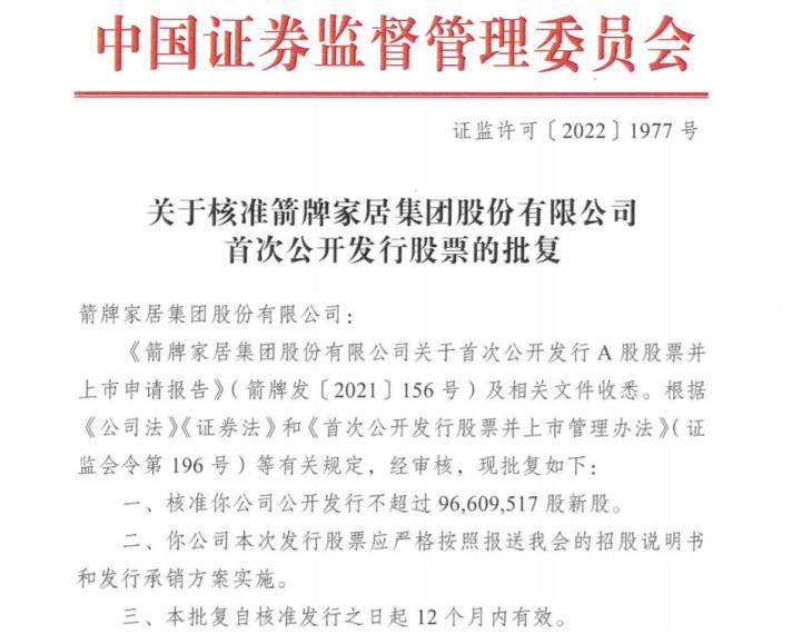 获证监会批复后,箭牌家居发布了2022年半年报和首次公开发行股票并上市招股说明书。