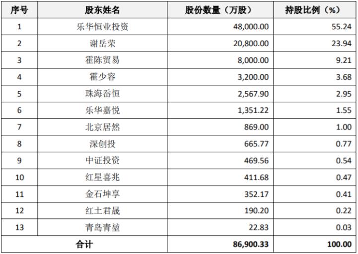 在经过1次股权转让和7次增资后,佛山市乐华恒业实业投资有限公司最终持有箭牌家居55.24%的股权,成为第一大股东,谢岳荣持股23.94%成为第二大股东,谢岳荣配偶霍秋洁的哥哥霍振辉手中的佛山市霍陈贸易有限公司与霍秋洁的姐姐霍少容,分别持股9.21%、3.68%,成为箭牌家居第三、第四大股东。