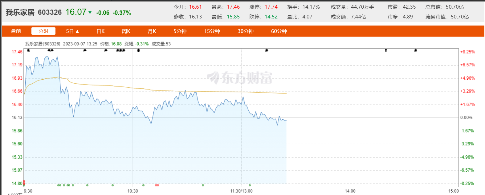 受该事件影响,9月7日我乐家居股价波动明显。据了解,自2023年8月28日至9月6日连续十个交易日内日,其股票累计上涨幅度为114.21%,同期上证指数累计上涨幅度为3.07%。但截至9月7日午盘,我乐家居股价维持在17.4元/股-16元/股。