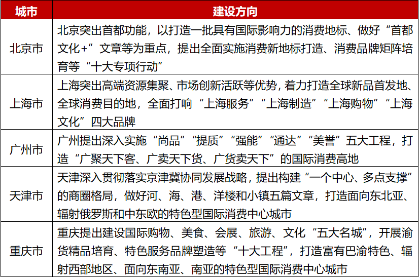 2021年7月,经国务院批准,在上海市、北京市、广州市、天津市、重庆市率先开展国际消费中心城市培育建设,提出“用5-10年时间,培育建设若干具有全球影响力、竞争力、美誉度的国际消费中心城市”的总体目标。