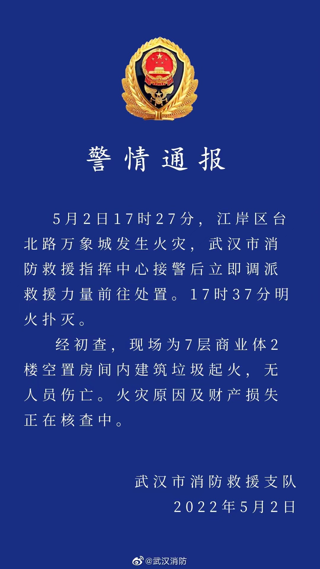 截图自武汉消防官方微博