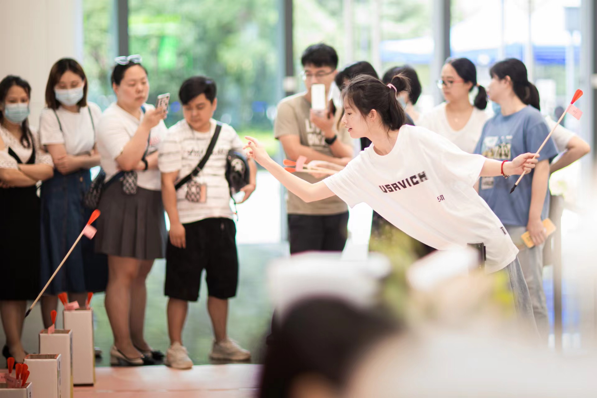 温度上升的人间六月,也是热情高涨的火辣一夏,长沙世茂环球金融中心巧妙将绿色可持续发展理念,融入到端午节的传统,通过古代传统投壶与现代垃圾分类相结合在与项目白领及消费者互动中科普垃圾分类,传播节能环保知识,环保又有趣。同时,手工爱好者还可在现场进行香囊DIY,消费可领取香蒲花束,带动现场人群一起祈福端午安康,在浓厚的节日氛围中趣味过端午。