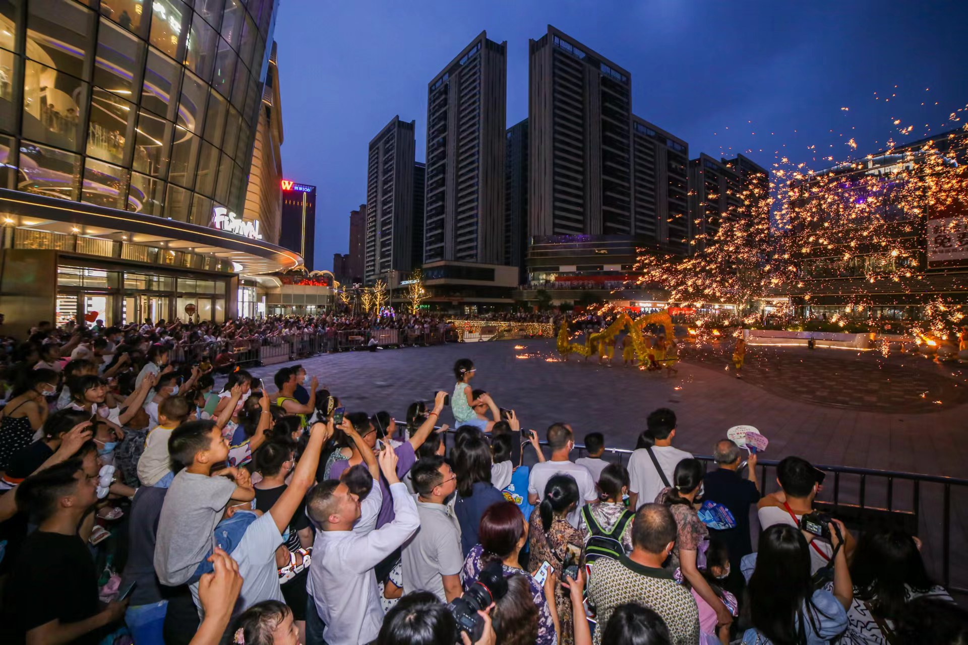 成都世茂广场,为了进一步传递传统文化魅力,在端午节期间打造大戏端午·非遗文化周,引进区域首次大型民间传统焰火“打铁花”,吸引了近万人到场观看,进一步激活区域文化氛围。小长假期间每天2场经典皮影戏剧目上演,让小朋友近距离感受传统戏剧的魅力,端午传统习俗风情也没落下,现场通过报名即可体验五彩线粽、扎染等古法手作活动,现场气氛热烈、人潮涌动。
