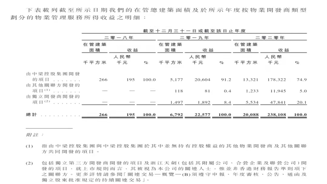 截至2020年12月31日,中梁百悦在管项目178个,在管总建筑面积约2010万平方米,复合年增长率为769.3%。其中,中梁百悦66.3%的在管面积是由母公司中梁控股开发,如果加之其他关联方开发项目,这个比例则达到了72.5%。