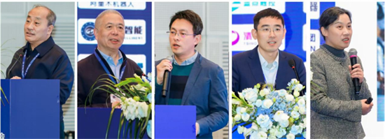 从左至右依次为:苏州大学教授孙立宁,国家自然基金委高技术中心原研究员刘进长,灵心巧手(北京)科技有限公司联合创始人董文峰,工信部赛迪研究院科技处处长兼机器人质量基础共性技术测评工信部重点实验室副主任董凯,浙江大学教授熊蓉。
