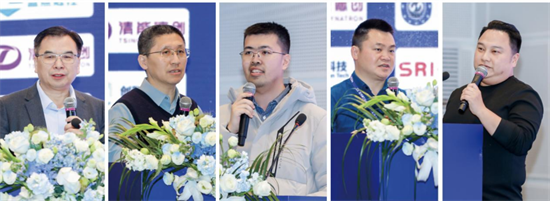 从左至右依次为:无锡巨蟹智能驱动科技有限公司合伙人邵晖,辰星(天津)自动化设备有限公司董事长刘松涛,清能德创电气技术(北京)有限公司副总经理汤小平,南京航空航天大学教授戴振东。