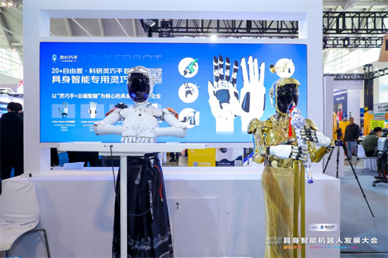 2025具身智能机器人发展大会专题展示区,众多行业头部企业参展。宇树科技人形机器人G1现场以每秒3.5米疾速舞蹈刷新运动性能纪录,山东优宝特泰山机器狗负重70公斤动态行走展现工业潜力。灵心巧手、巨蟹智能、蓝点触控、琼琪自动化、清能德创等20余家公司展示了其最新的具身智能机器人产品和解决方案,为参展嘉宾提供了一个直观了解行业最新动态的平台。