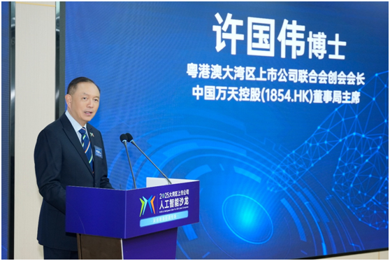 粤港澳大湾区上市公司联合会创会会长、中国万天控股(1854.HK)董事局主席许国伟在致辞中表示,人工智能已经渗透到生活的方方面面,AI催生出的新业态已经形成万亿级市场,通过AI实现智能优化生产流程,中国制造业企业的生产效率可提升30%以上。粤港澳大湾区上市公司联合会始终与时代同频,与湾区共振,未来将致力于让更多的“粤海经验”在大湾区开花结果,共同奏响人工智能产业发展的时代强音。
