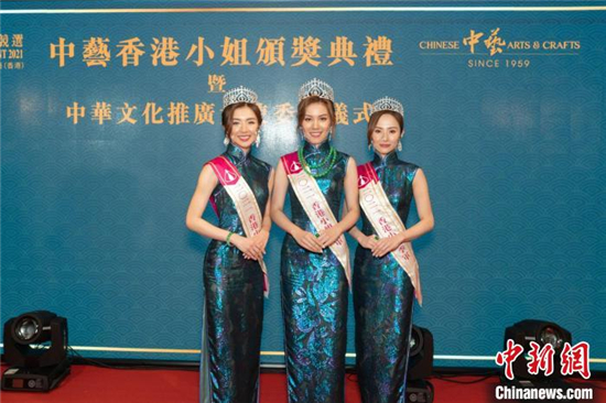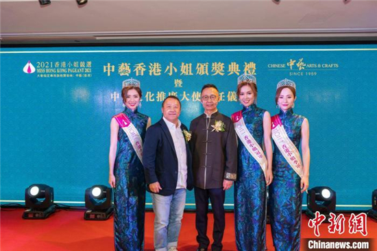 2021香港小姐颁奖典礼暨中华文化推广大使委任仪式”17日在港举行,中艺(香港)有限公司委任2021年港姐三甲为“中华文化推广大使”。