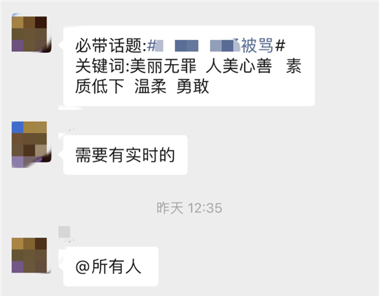 几个月前,姜瑞经介绍加入一个兼职群。经过简单培训,她成了一名“水军”。姜瑞说,主要工作内容是在微博宣传明星动态、影视作品,由派单人发送任务,群内的兼职“水军”抢单,随后在微博内发送撰写好的宣传文案。“只要有社交账号就能挣这个钱。”