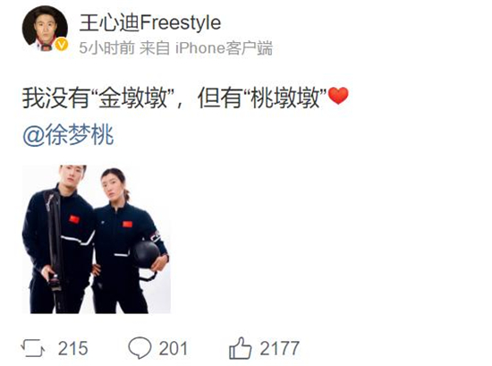 2月22日凌晨,徐梦桃和王心迪在微博上宣布恋情。