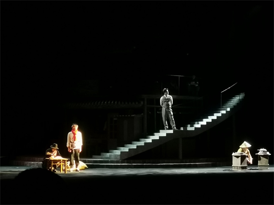 剧场里,受邀而来的不少观众观看时不时默默拭泪,矜持而又克制。但直到“天桥”那段,台上、台下互相招手致意,融为一体……