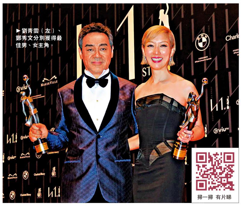 图:刘青云(左)、郑秀文分别获得最佳男、女主角。
