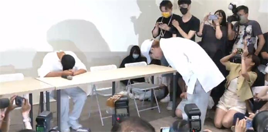 炎亚纶鞠躬致歉。(直播截图)