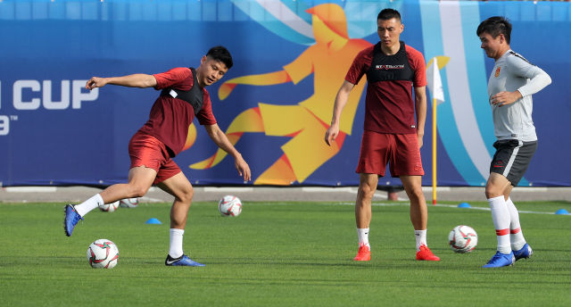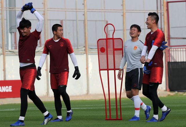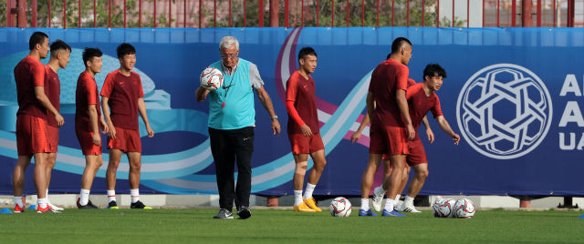 国足主教练里皮带领球员在阿布扎比训练备战。