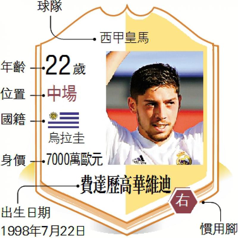 费达历高华维迪自2016年18岁时便加盟皇马,在却奥斯、莫迪历等巨星身旁学习下迅速成长,本届比莫迪历获得了更多的出场机会,并逐渐替代后者成为了球队的正选球员,只要他保持水準,他将会成为皇马的“新莫迪历”。