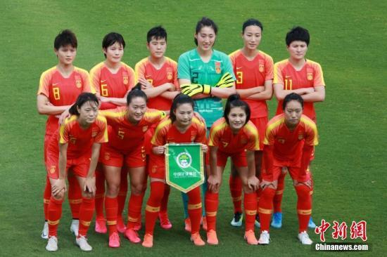 资料图:2月10日,2020东京奥运会女足亚洲区预选赛B组比赛在悉尼进行。中国队(红)以5:0战胜中国台北队,赢得小组出线,晋级附加赛。图为比赛前中国女足队员合影。中新社记者 陶社兰 摄 鍏
