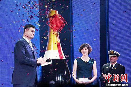资料图:姚明、叶莉夫妇出席庆典活动并正式为盛世公主号命名。 中新社记者 潘索菲 摄