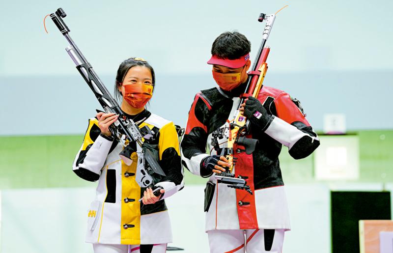 图:杨倩(左)伙拍杨皓然夺金。\新华社