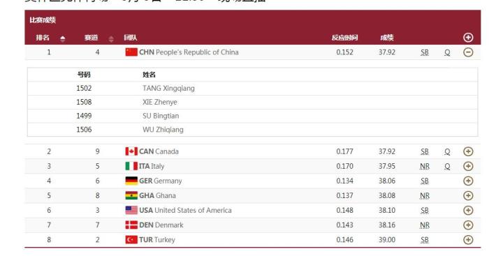 东京奥运会中国男子4x100接力晋级决赛